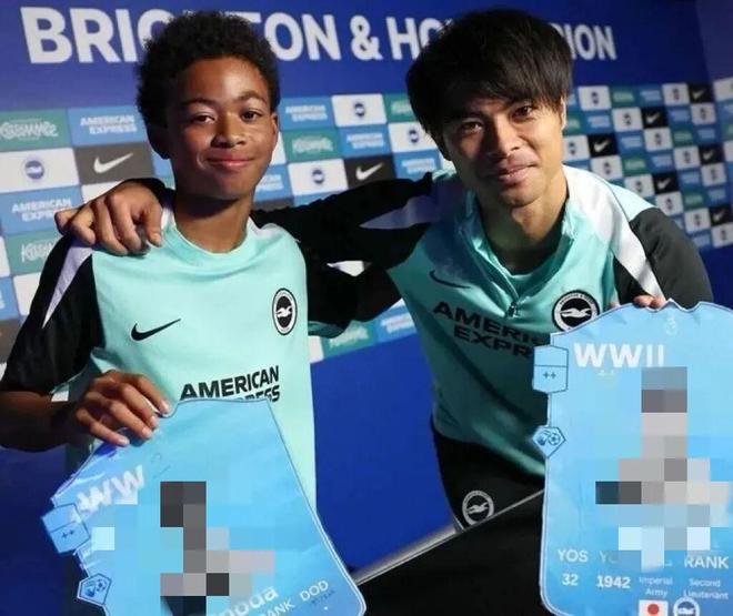 就是这样的一个形象,却公然出现在一次以和平停战为主题的活动当中,布莱顿有着不可推卸的责任。虽然在事件发酵的第一时间官方就做出了回应,但是没有对三笘熏为代表的球员进行处罚,也很难让球迷满意。除此之外,和三笘熏一起合影的青训球员虽然看起来是黑人球员,但同时拥有法国和日本血统,而且在4岁的时候就在伦敦加入了一家名为”日本武士学院“的青训机构,未来不排除为日本队效力的可能性。